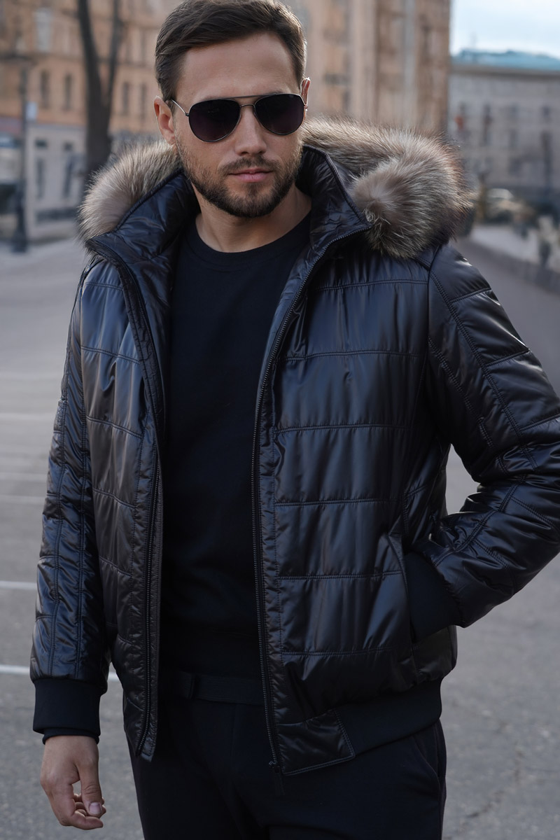 Experience comfort and style with the Freever UF 2343 men's winter jacket in Casual black. It combines functionality and fashionable design to keep you looking and feeling great during the cold season. Made of high quality polyester, it is filled with camel hair with holofiber and completed with a heat-reflective lining. In other words, the jacket is comfortable in bitter frosts and is not afraid of precipitation and wind. Features of the model: quilted bomber-fashion, hood with American raccoon trim, zipper with one runner, knitted cuffs and bottom not knitted elastic band. With a removable hood and fur trim that is also removable, the jacket is easy to adapt to changing weather conditions. And 2 exterior and 3 interior pockets provide plenty of room for personal items.