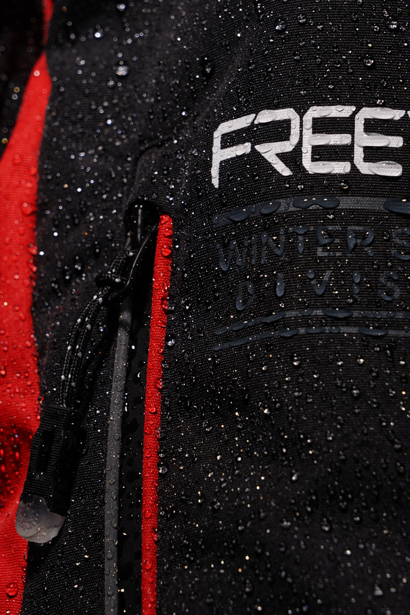 Das antistatische Fleecefutter wird mit einer Polyesterfaser-Isolierung mit einer Dichte von 100 g/m² kombiniert, die Wärme ohne zusätzliches Gewicht speichert. Geklebte Nähte und winddichte Eigenschaften reduzieren den Wärmeverlust und verhindern das Eindringen von Feuchtigkeit beim Skifahren.