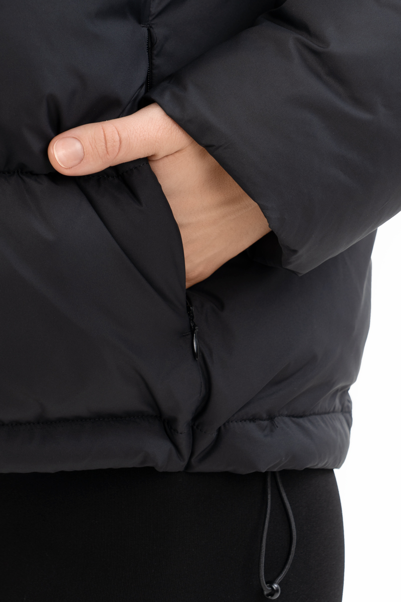 Die Jacke ist mit einer abnehmbaren Kapuze mit Kordelzug und Verschlüssen sowie einem Kordelzug am unteren Rand des Produkts zur Anpassung der Passform ausgestattet. Der Reißverschluss mit zwei Schiebern erhöht den Tragekomfort, und eine Innentasche sowie zwei Außentaschen sorgen für zusätzliche Praktikabilität im Alltag.