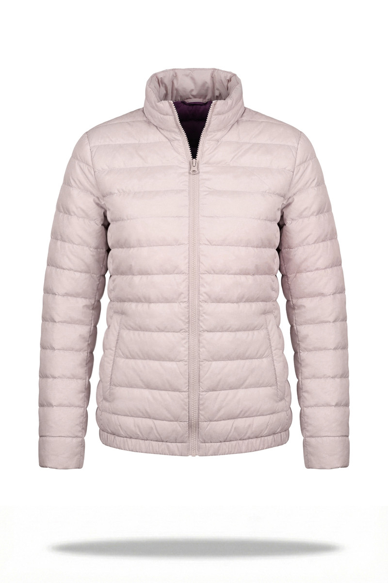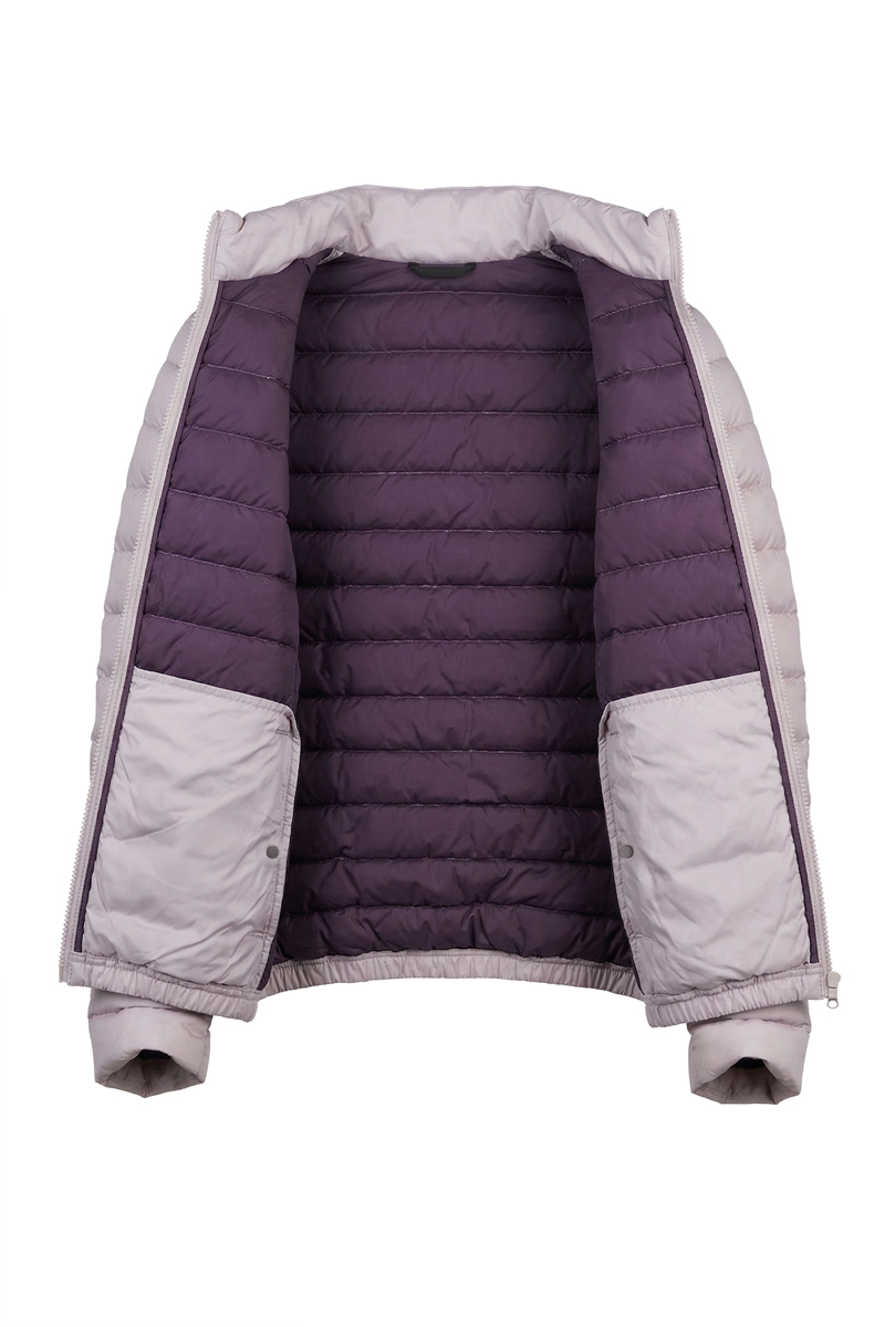 The jacket features a center front zipper with a single slider for convenient everyday use. The minimalist, hoodless design makes this model practical for both city life and travel. It includes four pockets—two exterior and two interior—for storing essentials.