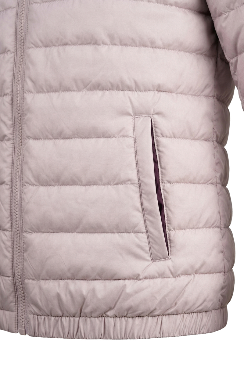 The outer material is 100% polyester, known for its durability and ease of care. The polyester fiber insulation effectively retains heat without weighing down the garment, ensuring comfort during active movement. The straight cut with an elastic hem provides a better fit and additional wind protection.