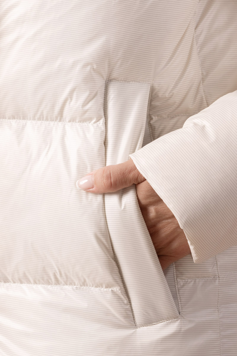 Women's down coat Freever NF 2529 milky is an elegant winter model, designed for maximum warmth and coziness in the cold season. It is made of durable polyester with TERMO SYSTEM lining, which reliably keeps warm and protects from wind. The insulation is natural duck down (90% down, 10% feather), which provides lightness and excellent thermal insulation even in severe frosts.