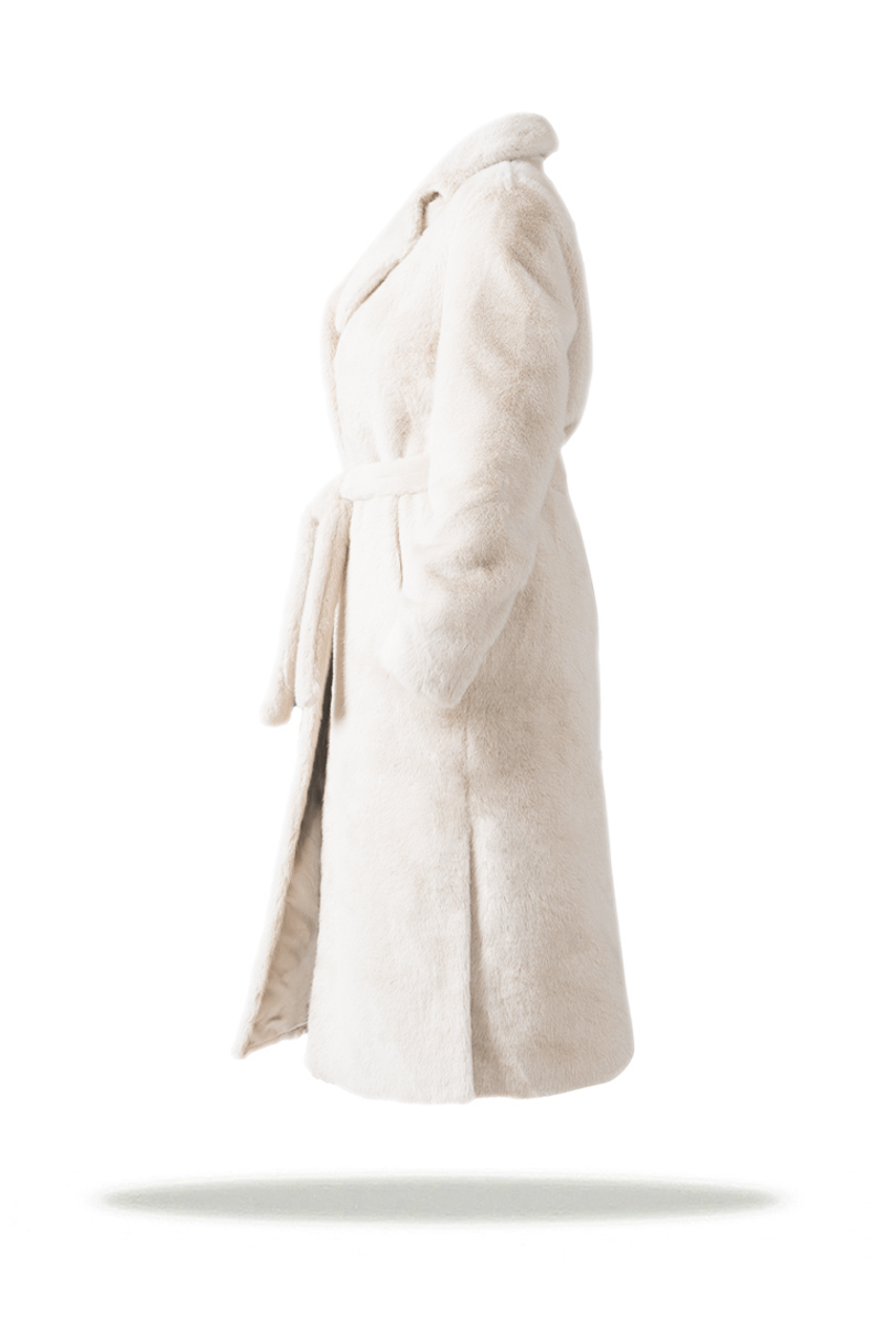 Delicate eco-coat Freever UF 28325 in milk color is an ideal choice for connoisseurs of sophisticated style. Long straight silhouette with a belt beautifully emphasizes the waist, and soft faux fur adds sophistication to the image.