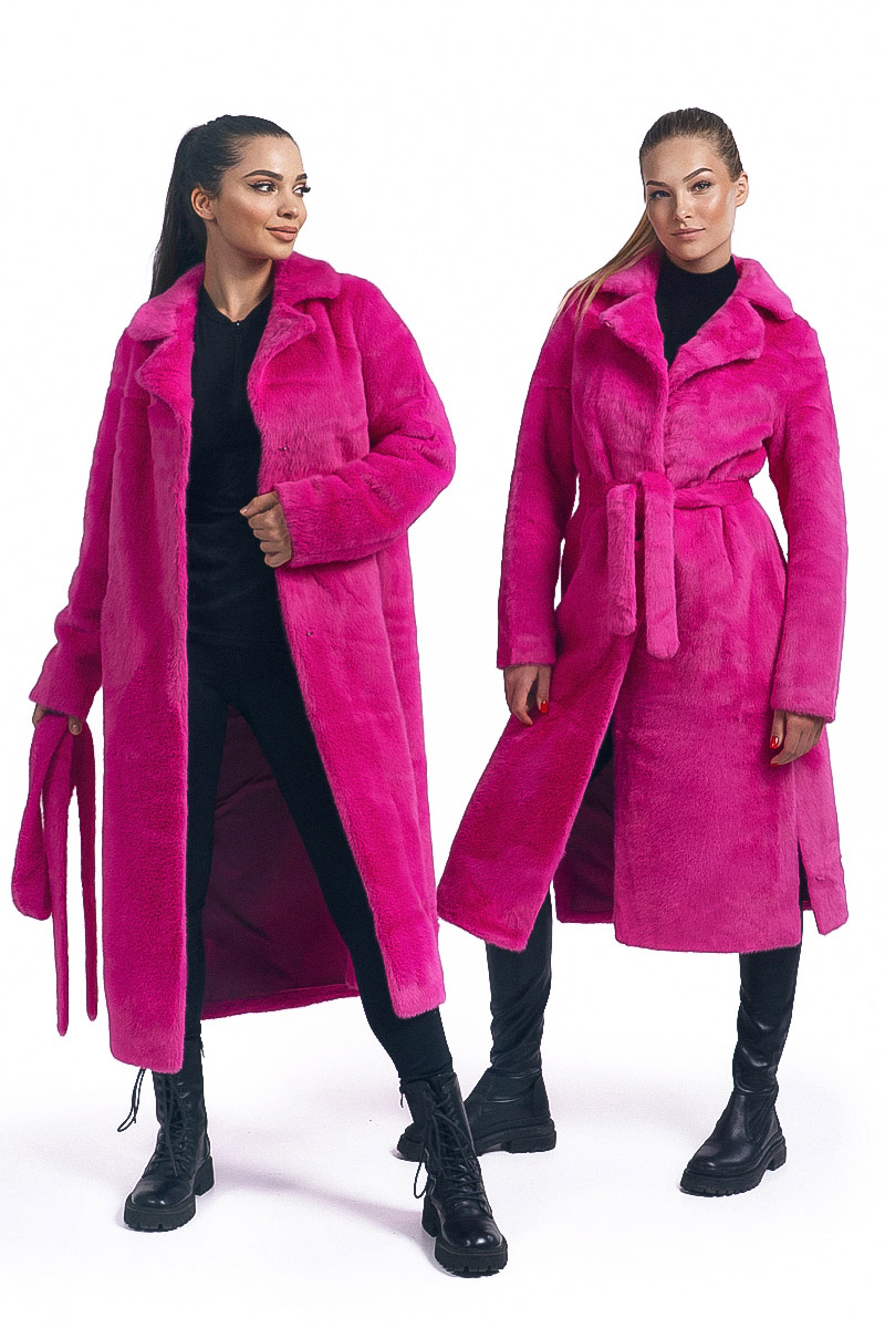 The Freever UF 28325 crimson eco-coat is a bold accent in your closet. Stylish style with a belt and classic collar harmonizes with the bright shade, emphasizing individuality and femininity. Soft fur gives a feeling of coziness and warmth on cool days.