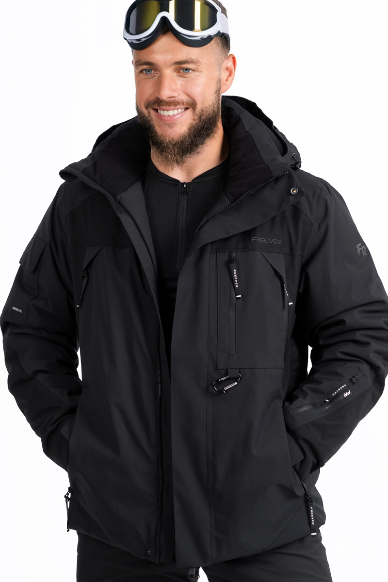 The Freever NF 21639 men's black ski jacket is a premium model for extreme conditions and active recreation. The modern 4-WAY SYSTEM membrane (15,000 mm waterproof rating and 15,000 g/m²/24h vapor permeability) reliably protects against wind and moisture while maintaining excellent breathability. 120 g/m² insulation and TERMO SYSTEM lining provide the perfect balance of warmth and comfort.