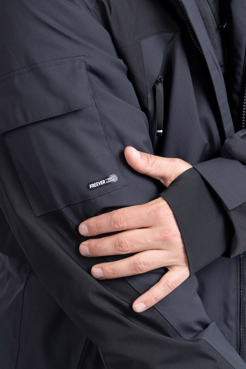 The Freever NF 21639 men's gray ski jacket offers reliable protection from the cold and moisture, designed for active men who value comfort and functionality. It's made from high-tech 4-WAY SYSTEM material (100% polyester) with a membrane that provides 15,000 mm of waterproofness and excellent breathability—15,000 g/m²/24h. The TERMO SYSTEM lining maintains an optimal microclimate, and the 120 g/m² insulation guarantees warmth even in frosty weather.