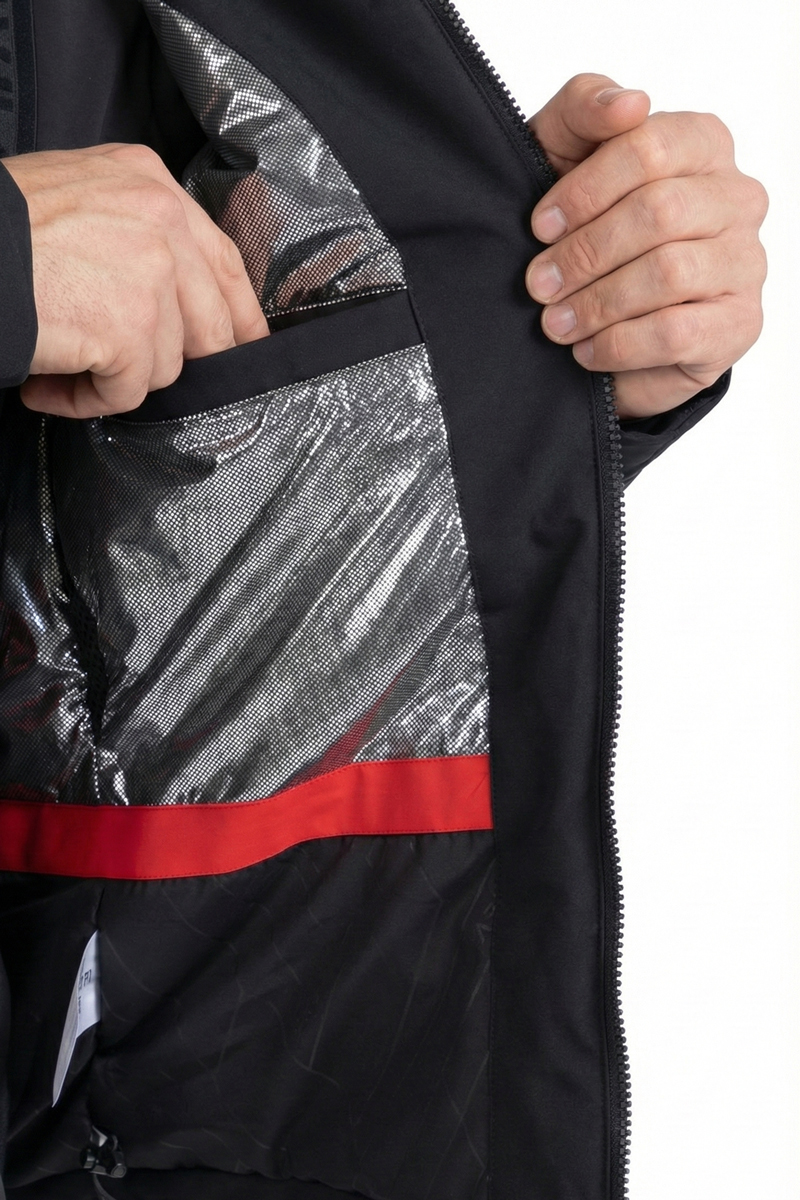 The 80 g/m² polyester fiber insulation, together with the TERMO SYSTEM lining, maintains a stable heat balance and does not overload the product with volume. Taped seams enhance moisture protection, while inner cuffs and adjustable outer cuffs promote a snug fit and heat retention.