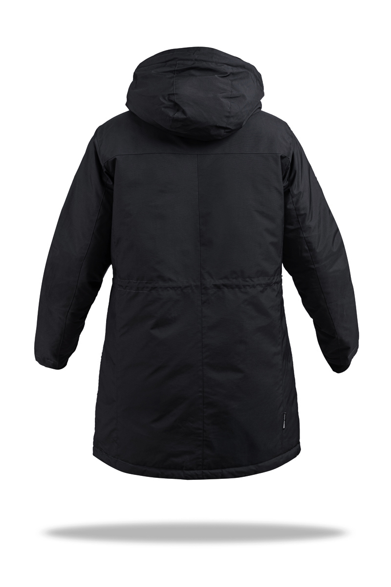 Practical black color and laconic cut make the parka relevant both for everyday wear and for active lifestyle. Spacious pockets (4 external and 2 internal) add functionality, and the waist tuck allows you to adjust the fit to your figure.