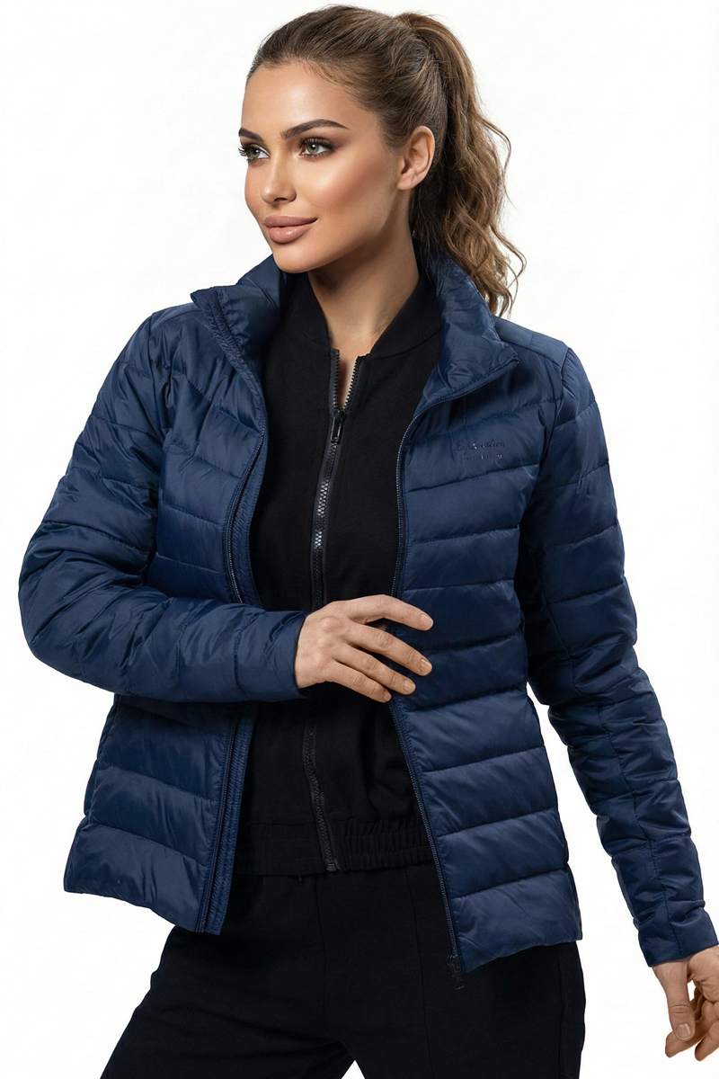 The Freever UF 20218 women's down jacket in blue is designed for mid-season use in spring and fall. The fitted style ensures a neat fit, combining everyday casual style with classic lines. The quilted construction promotes even distribution of insulation and heat retention in changeable weather.