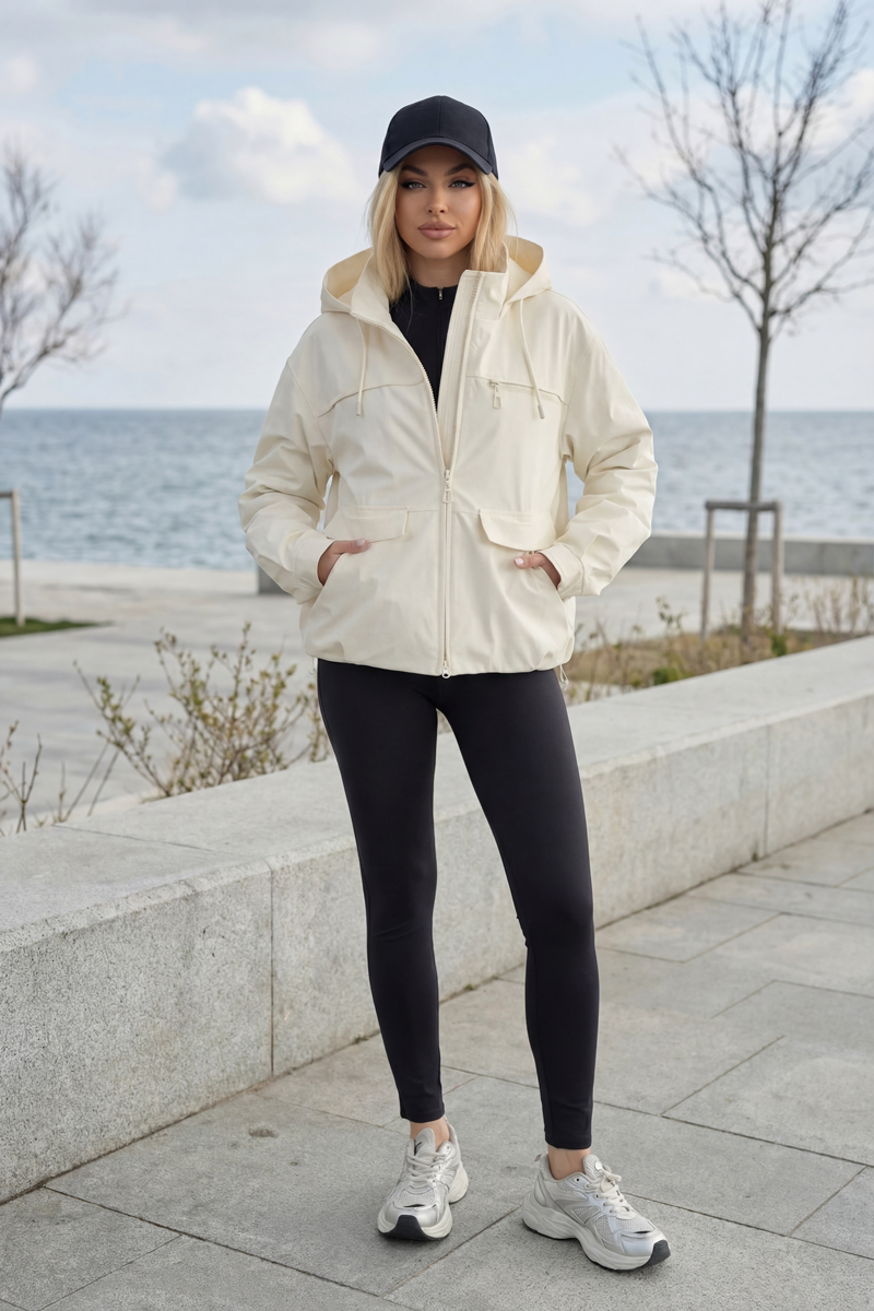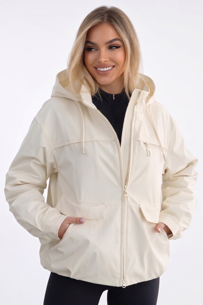 The Freever NF 229620 women's jacket in milk color is a lightweight, casual demi-season model designed for comfortable wear in the spring. The light shade adds freshness and elegance to the look, and the versatile design easily combines with everyday wardrobe items.
