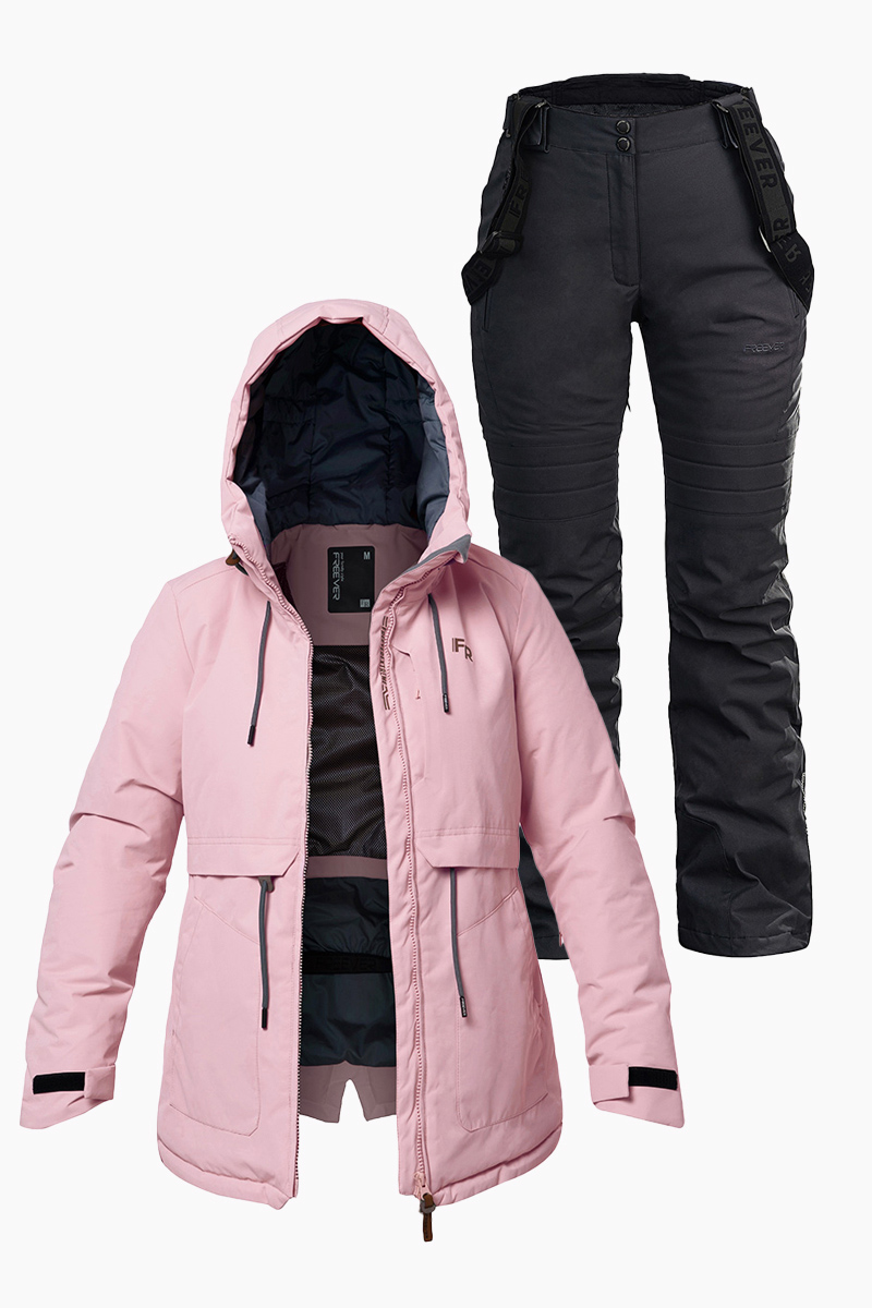 Women's ski suit FREEVER 21767-21652 pink - this is an elegant design and functionality, a combination of style and comfort - everything you need for an unforgettable winter holiday in the mountains. The top of the jacket is made of wind- and waterproof breathable elastic membrane. The lining insulated with innovative fiber is complemented by heat reflection and retention technology. The central fastener has two runners. There is a high collar, adjustable hood, snow skirt, double cuffs. Taped seams and waterproof zippers provide additional tightness from wind and water. For convenience, there are 3 internal, 4 external, as well as separate pockets for a ski pass and mask.