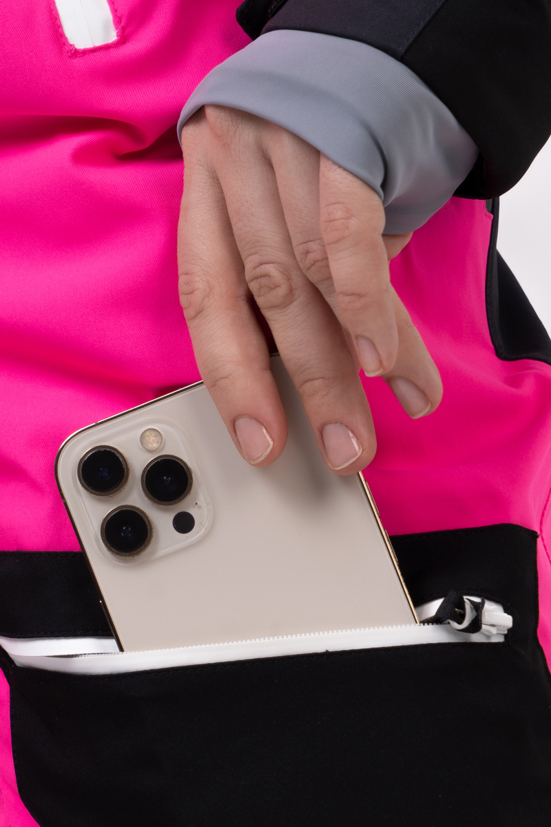 The Freever NF 21629 women's snowboard suit in pink is a vibrant and functional choice for active women who value comfort and style on the slopes. This suit is made from innovative 4-WAY SYSTEM material (100% polyester) with a membrane that provides 15,000 mm of waterproofness and excellent breathability of 15,000 g/m²/24 hours.