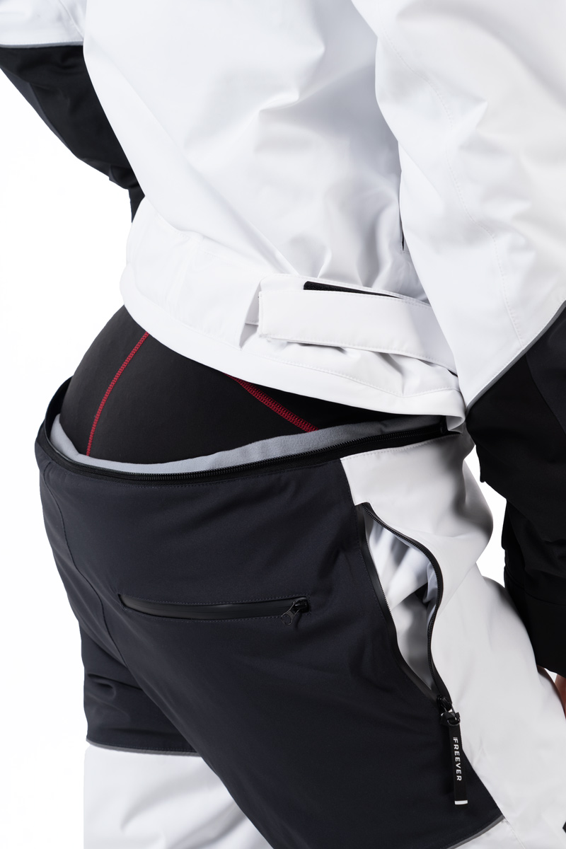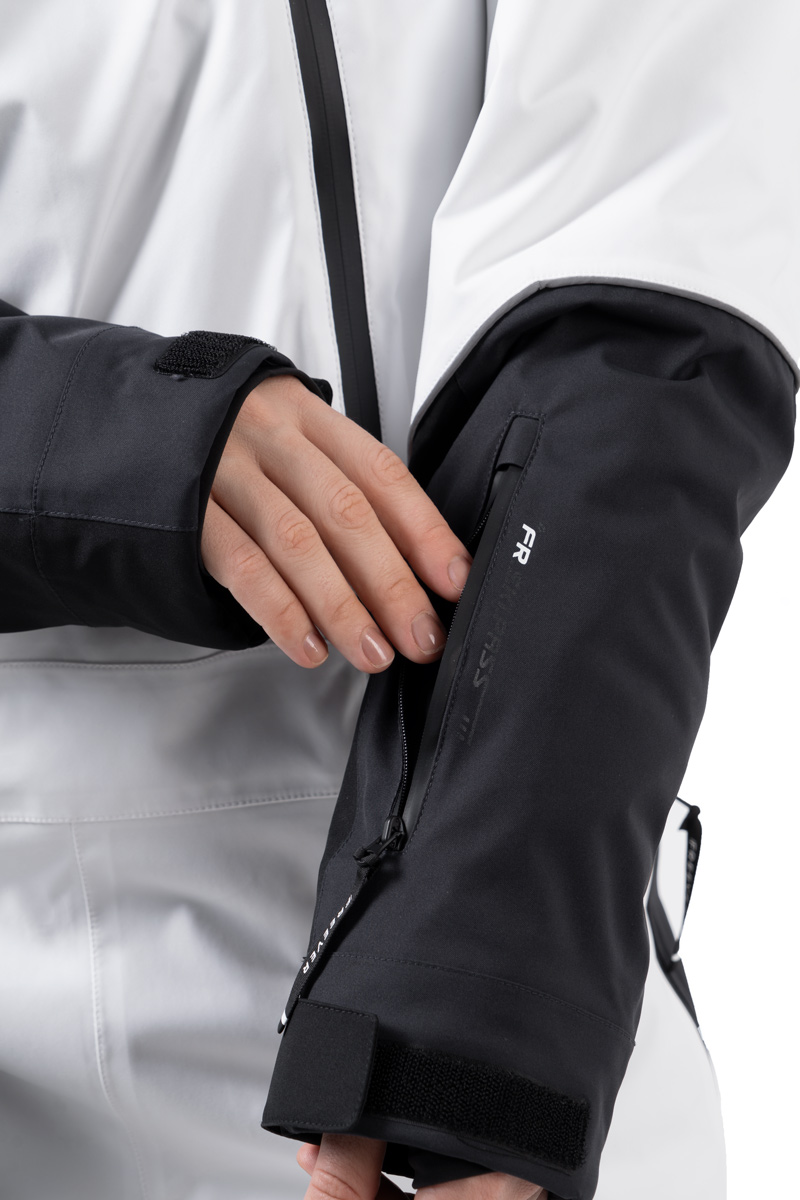 The Freever NF 21629 women's snowboard suit in white is designed for extreme comfort, confident protection, and maximum freedom of movement. The 15,000 mm membrane reliably protects against wet snow and wind, while the breathability of 15,000 g/m²/24h maintains a comfortable microclimate even during intense activity. 120 g/m² insulation and TERMO SYSTEM lining provide stable warmth without overheating, making the model suitable for both intensive skiing and prolonged stays in low temperatures.