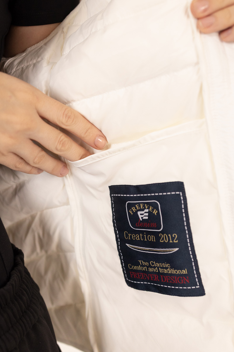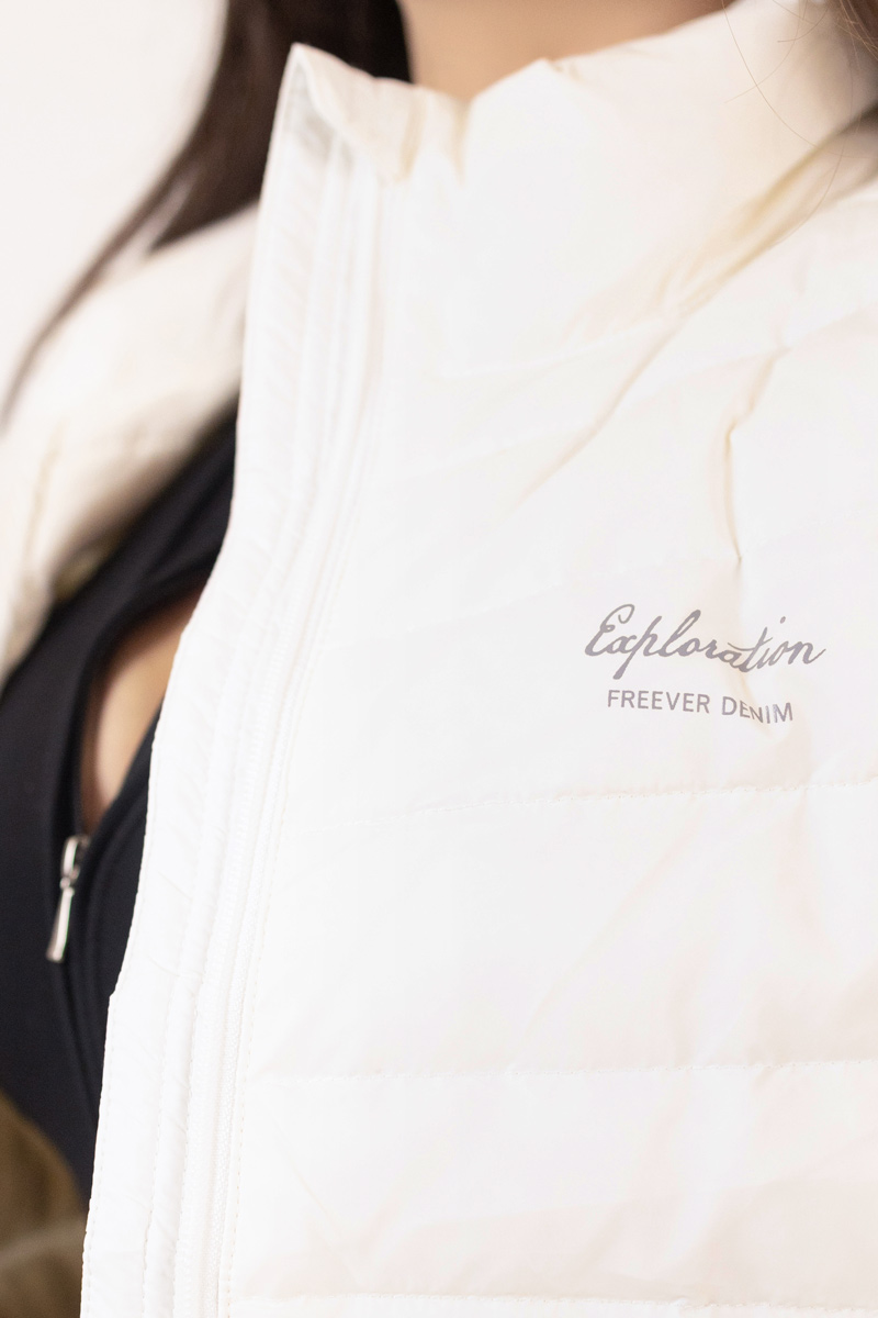 The Freever UF 20216 women's white vest is an elegant combination of style and functionality. Lightweight yet warm thanks to its natural down insulation (90% duck down / 10% feather), it's perfect for the transitional seasons.